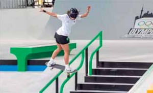 UEA - SIS 1º série 2025/2027 2024A imagem mostra a atleta Rayssa Leal em uma manobra sobre o corrimão no campeonato pré-olímpico de skate street na China.