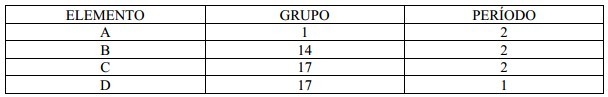 Considere os seguintes elementos e a classificação respectiva dos grupos e períodos a que pertencem na tabela periódica.