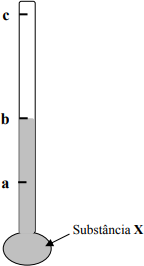 ( ) Se a marca b é alcançada quando o termômetro está em equilíbrio térmico com água a 4 ºC, é possível afirmar que a pode representar a temperatura da água a 3 ºC, se a substância X for o mercúrio.