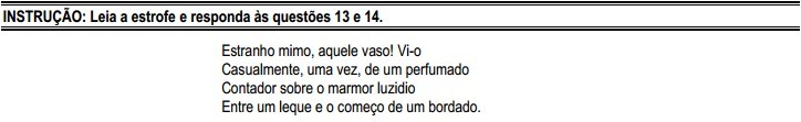 Em relação aos aspectos formais do segundo verso do quarteto, Casualmente, uma vez, de um perfumado, assinale a afirmativa correta.