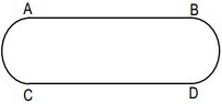 A figura abaixo representa, esquematicamente, a raia mais interna (número 1) de uma pista de atletismo composta de 7 raias. Os segmentos de reta AB e CD são paralelos e de mesma medida e os arcos AC e BD semi-circunferências.