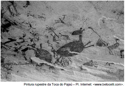 A pintura rupestre acima, que é um patrimônio cultural brasileiro, expressa