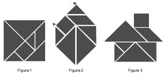 O tangram é um jogo oriental antigo, uma espécie de quebra-cabeça, constituído de sete peças: 5 triângulos retângulos e isósceles, 1 paralelogramo e 1 quadrado. Essas peças são obtidas recortando-se um quadrado de acordo com o esquema da figura 1. Utilizando-se todas as sete peças, é possível representar uma grande diversidade de formas, como as exemplificadas nas figuras 2 e 3.
